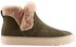 Ankle-high suede pull-on booties. Rounded toe. Faux lapin fur collar. Self stitching. Rubber outsole.