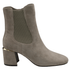 Polished hardware accentuates the sleek block heel of a suede bootie constructed with a rib inset for ease.